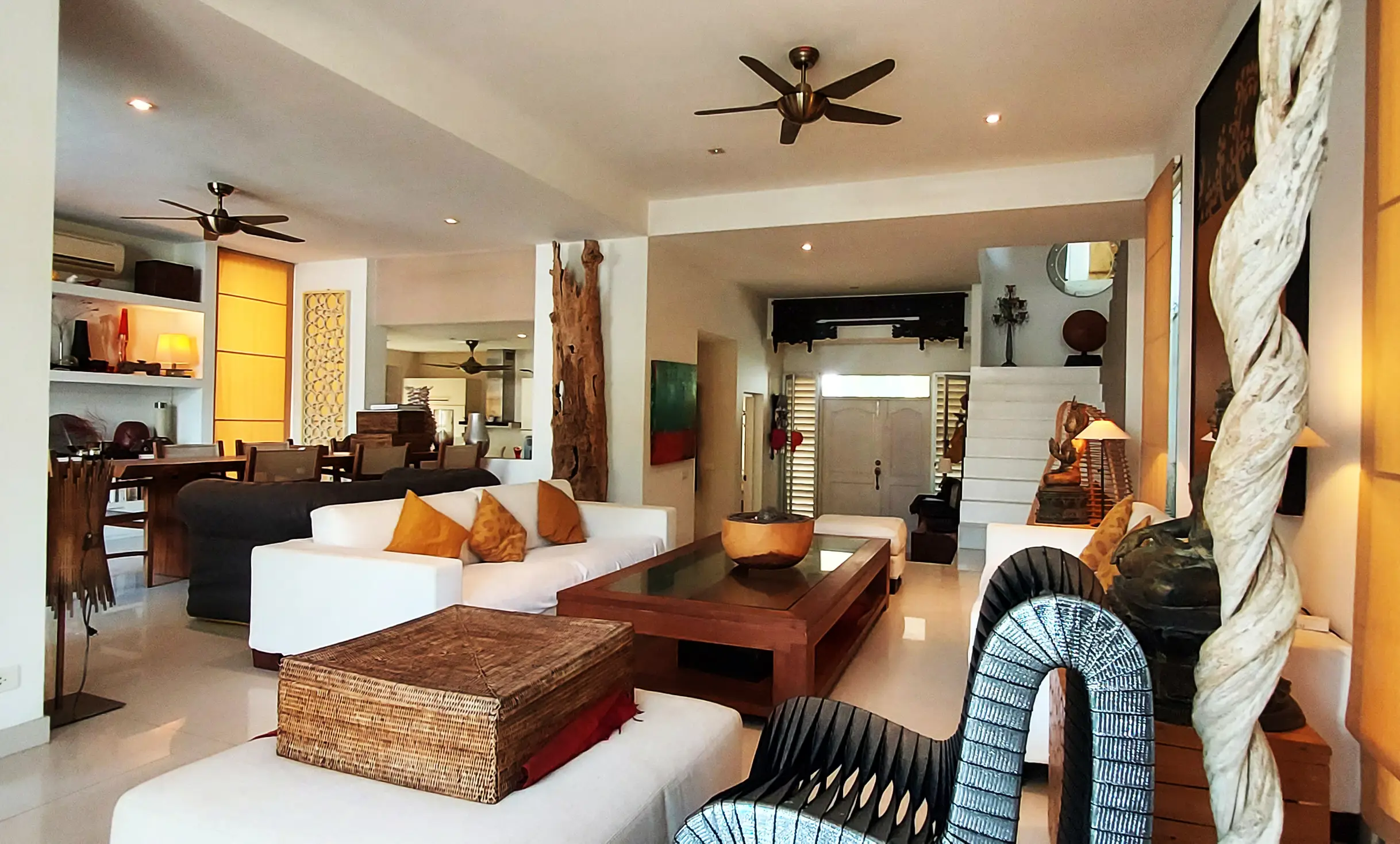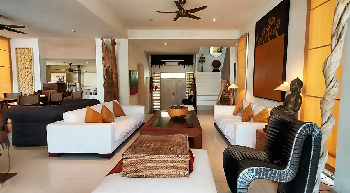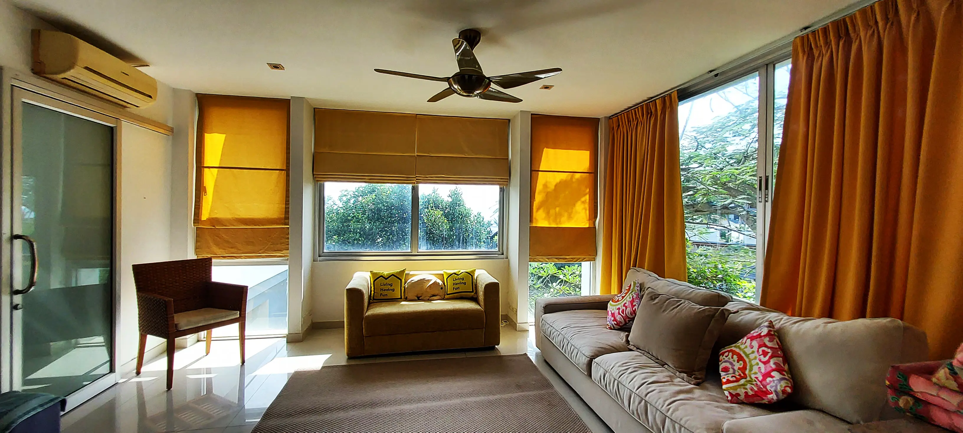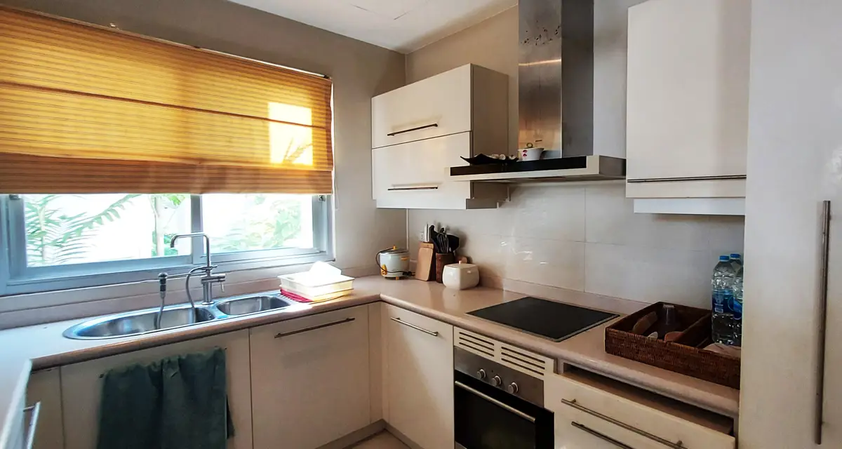 The villa is fully furnished and beautifully decorated. The bathrooms are fully tiled. All rooms have AC.