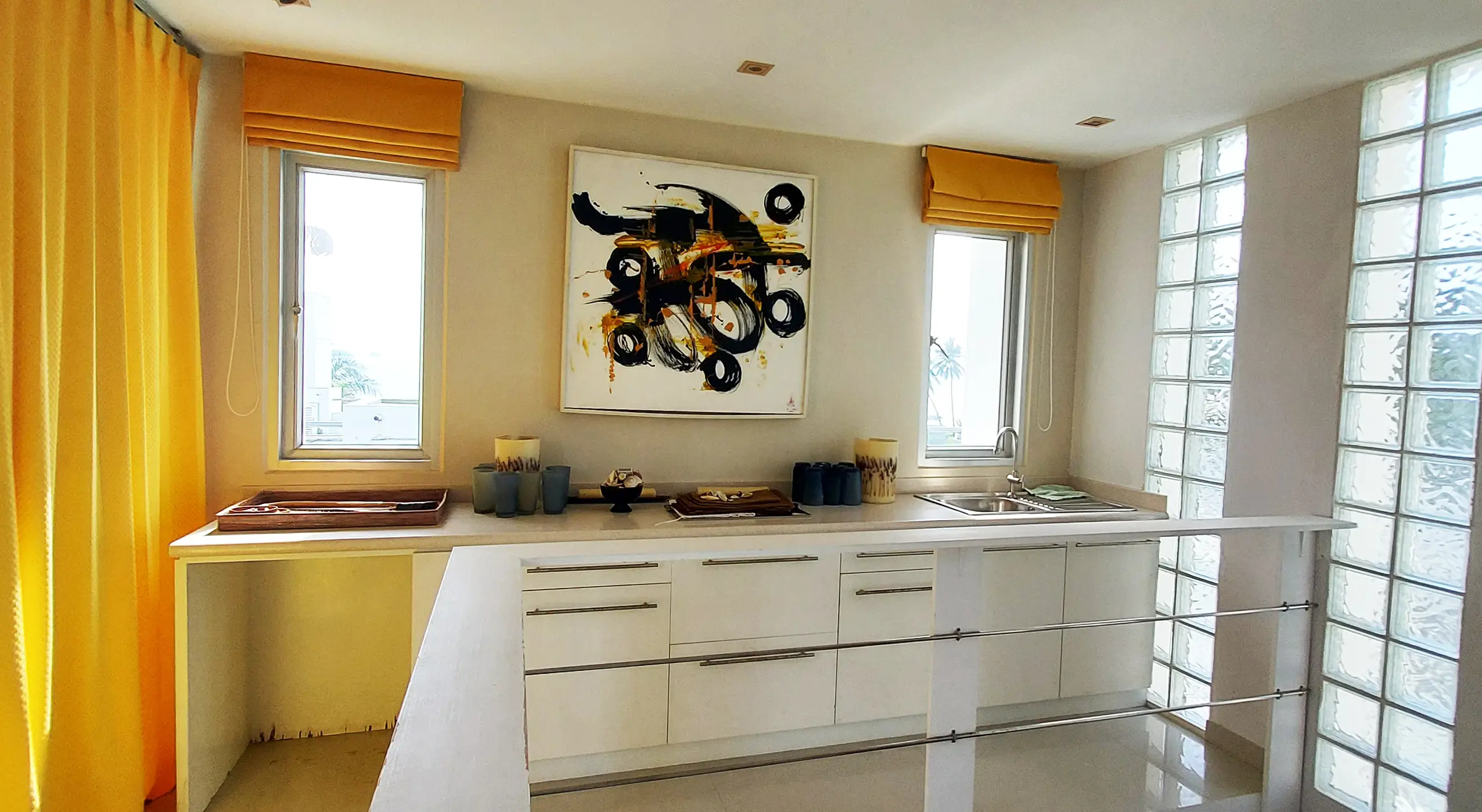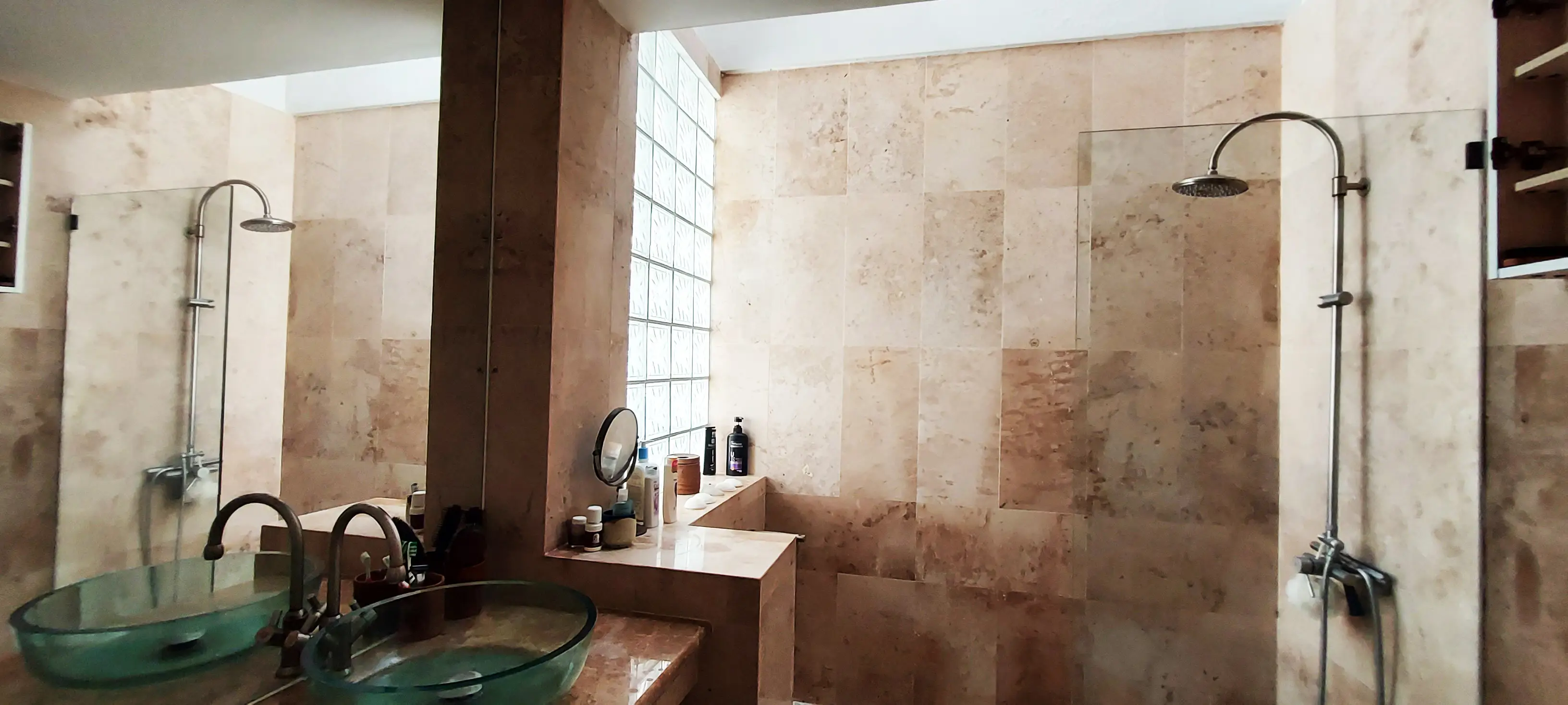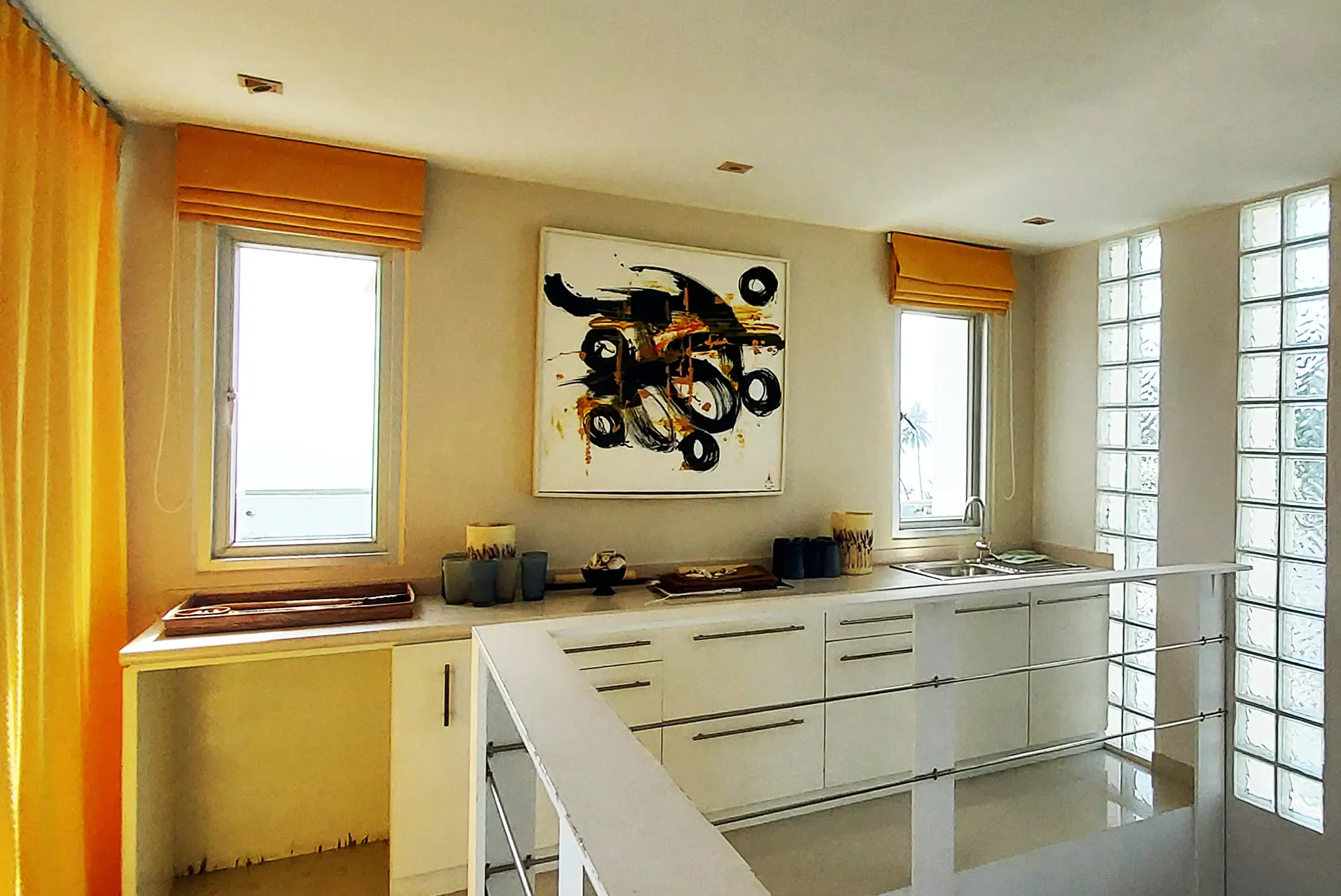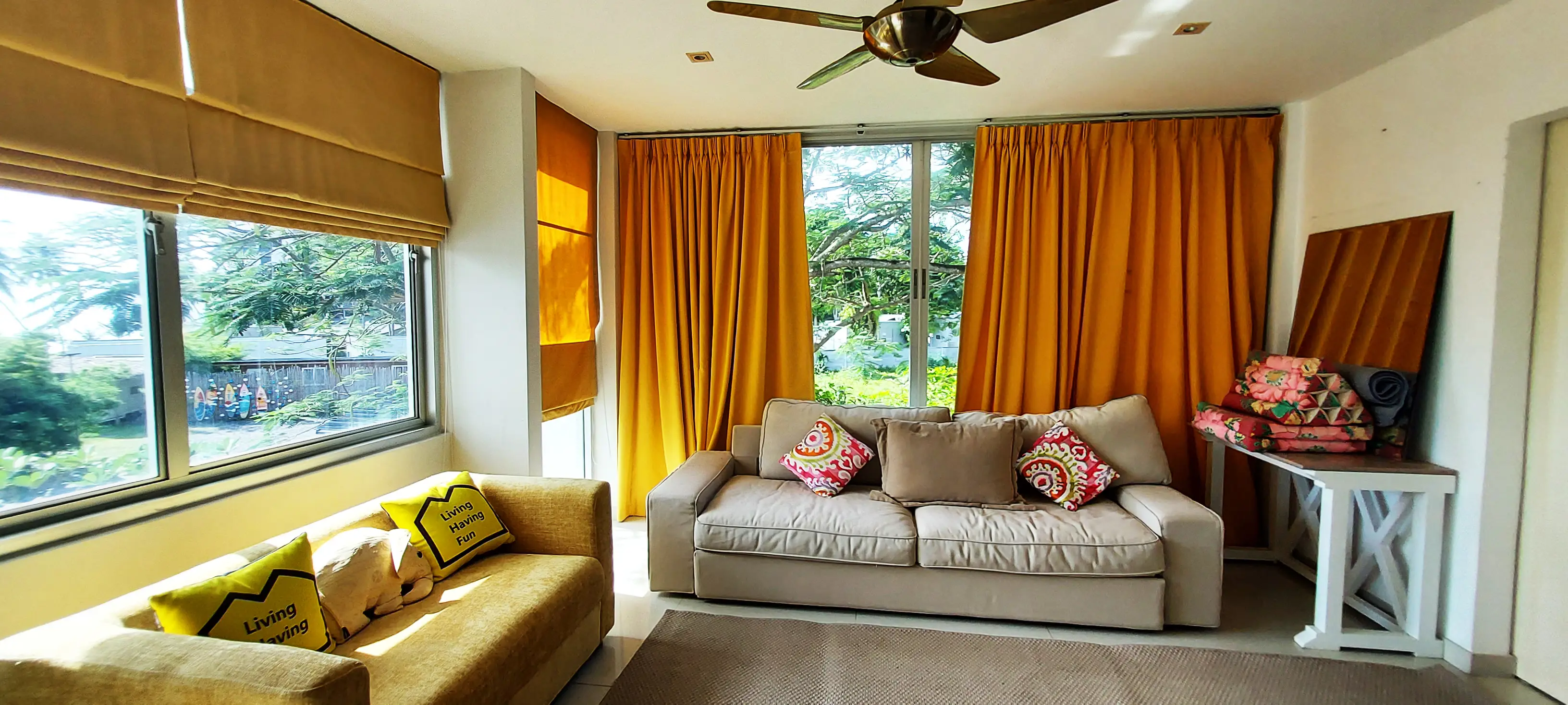 The villa is fully furnished and beautifully decorated. The bathrooms are fully tiled. All rooms have AC.