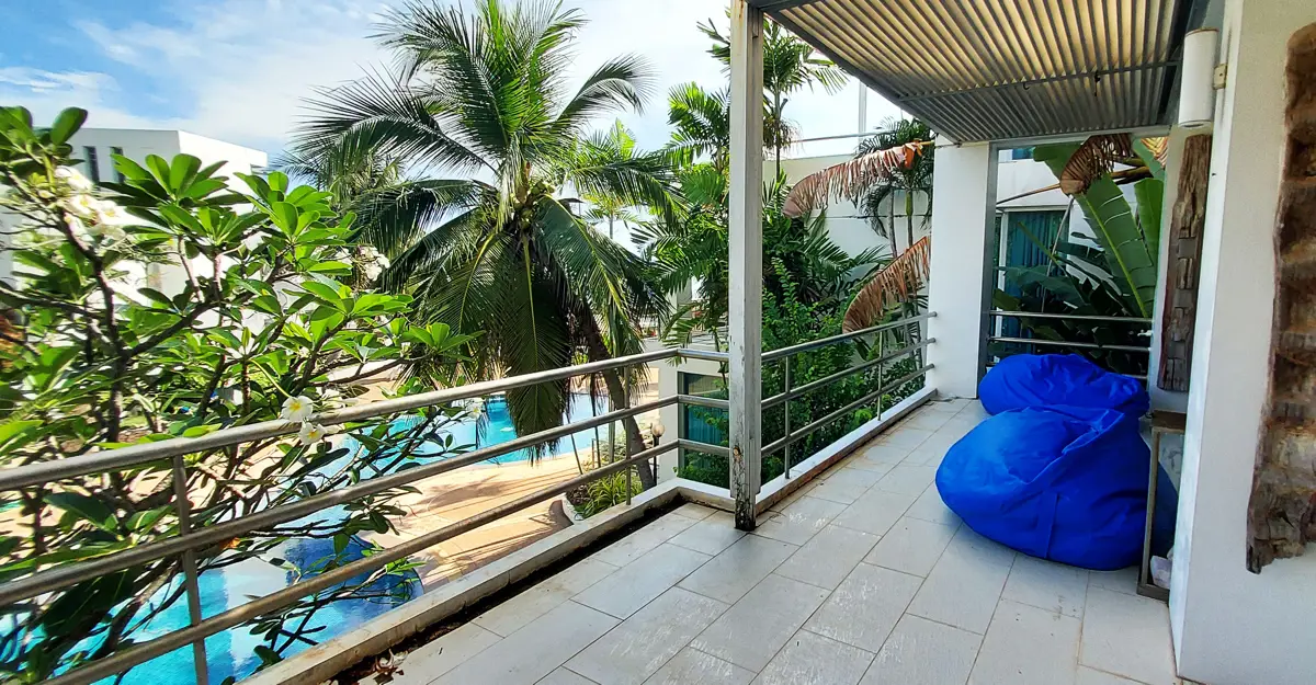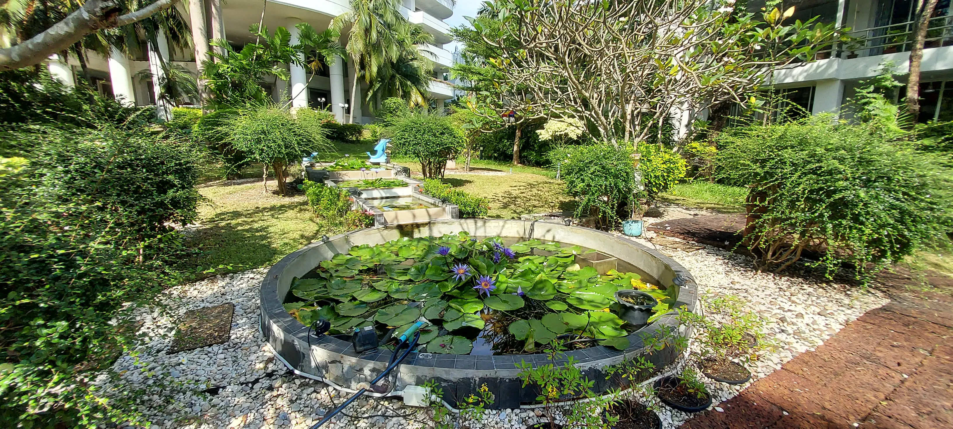 The entire Crystal Beach complex is located directly on a private beach. It has a total of 14 villas, but also 80 condominiums in a building of 21 floors.