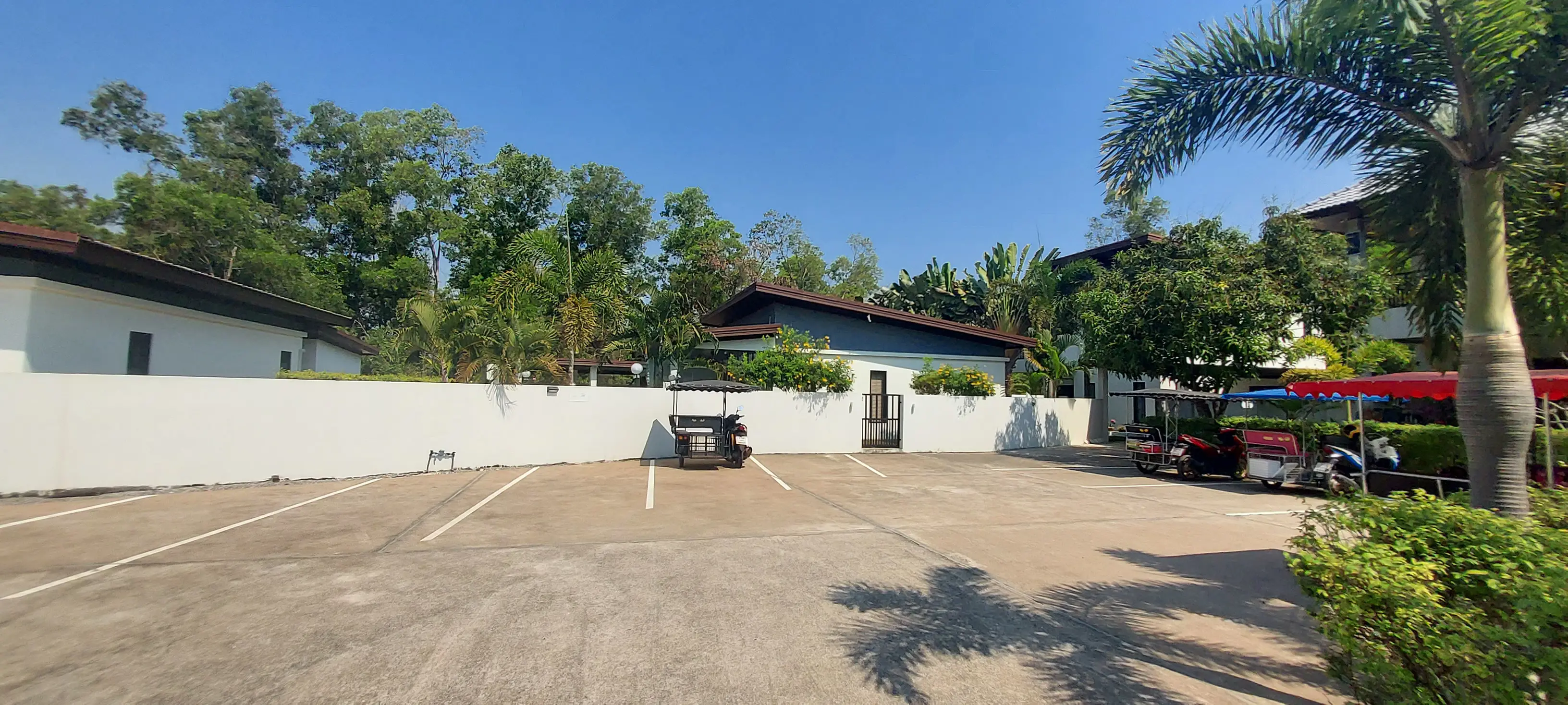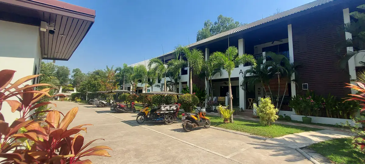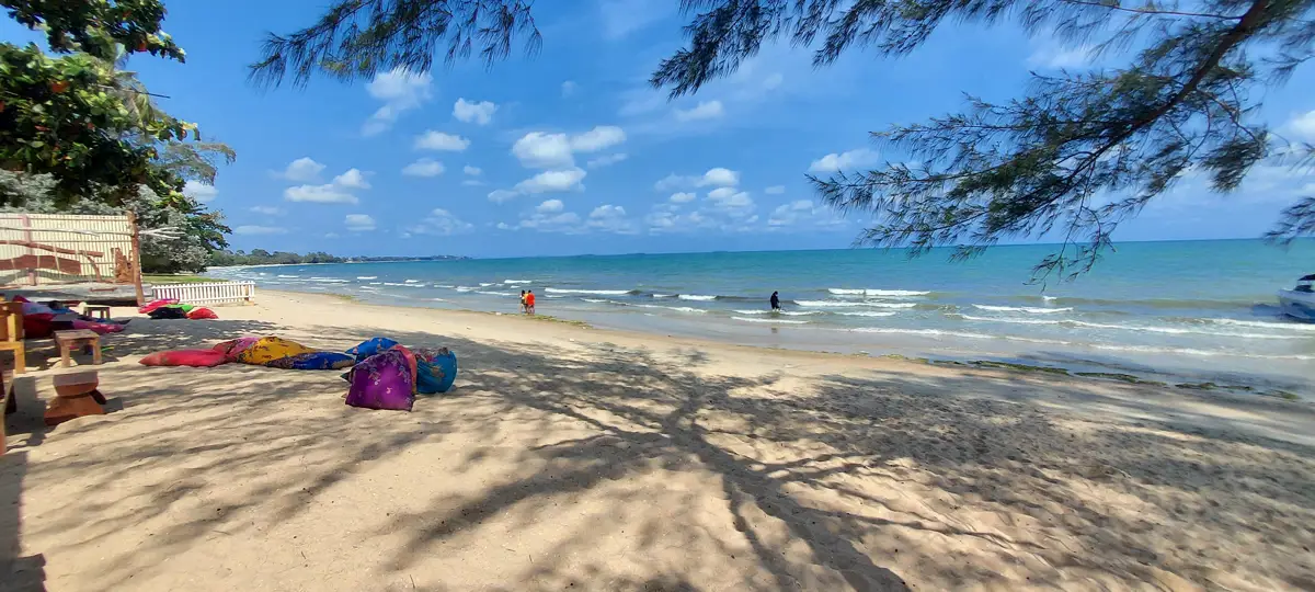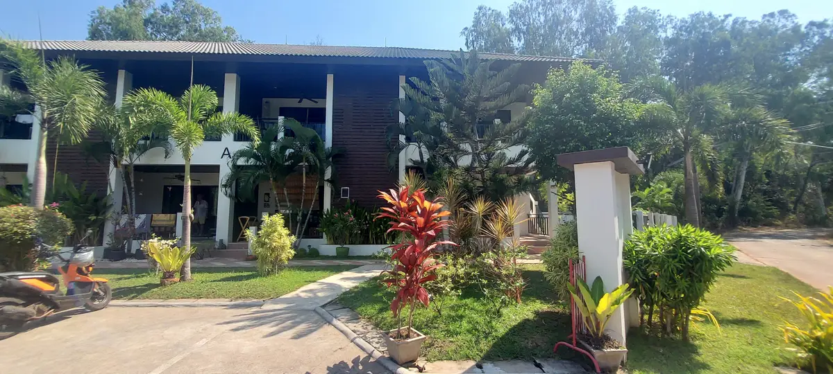 The Palm Leaf residential area is located in the purple village of Phlong Sawai, a few km west of Laem Mae Phim. Nearby is a lovely beach with the restaurant Aquatic.