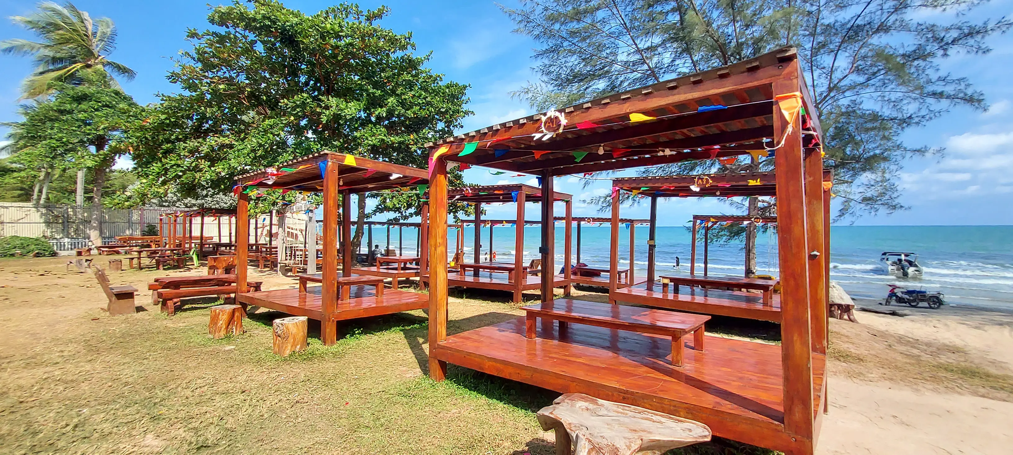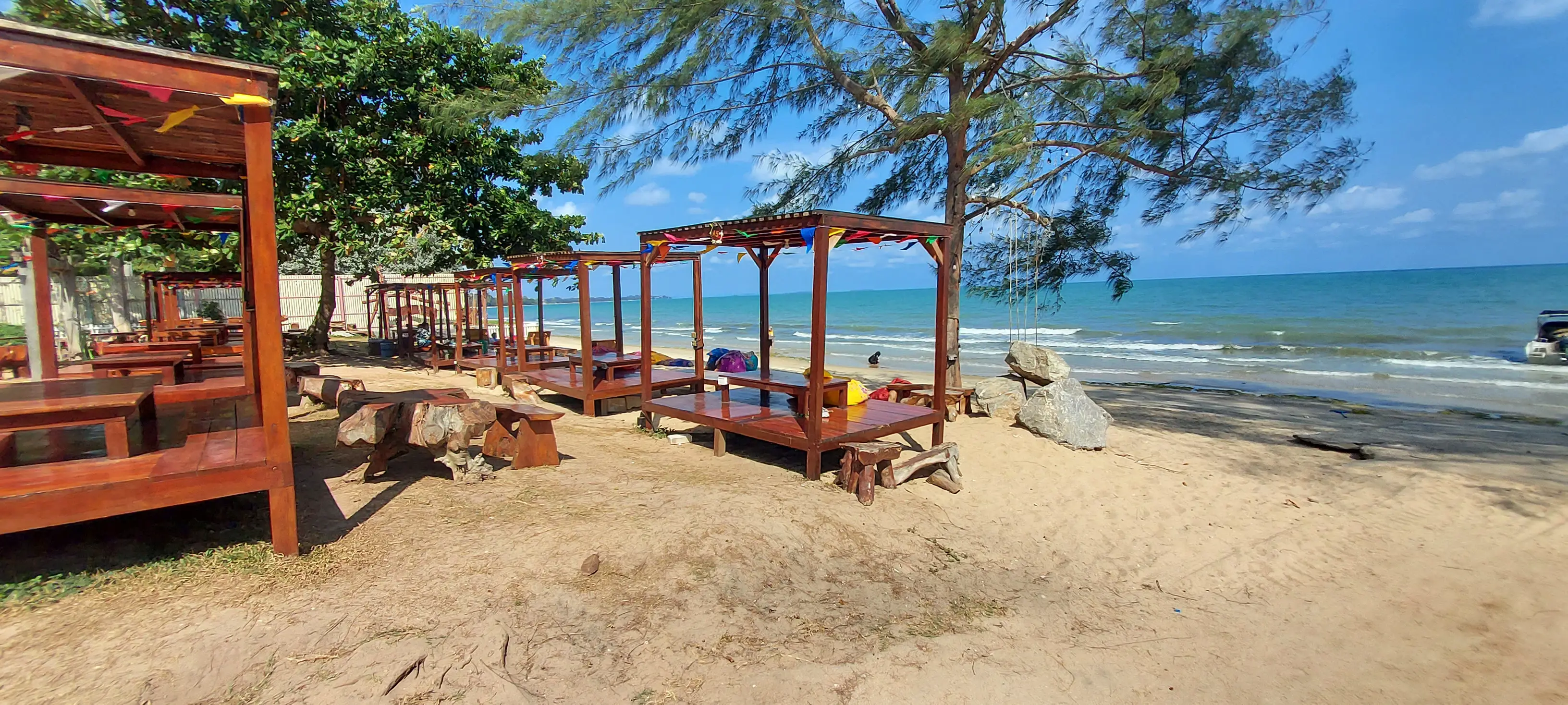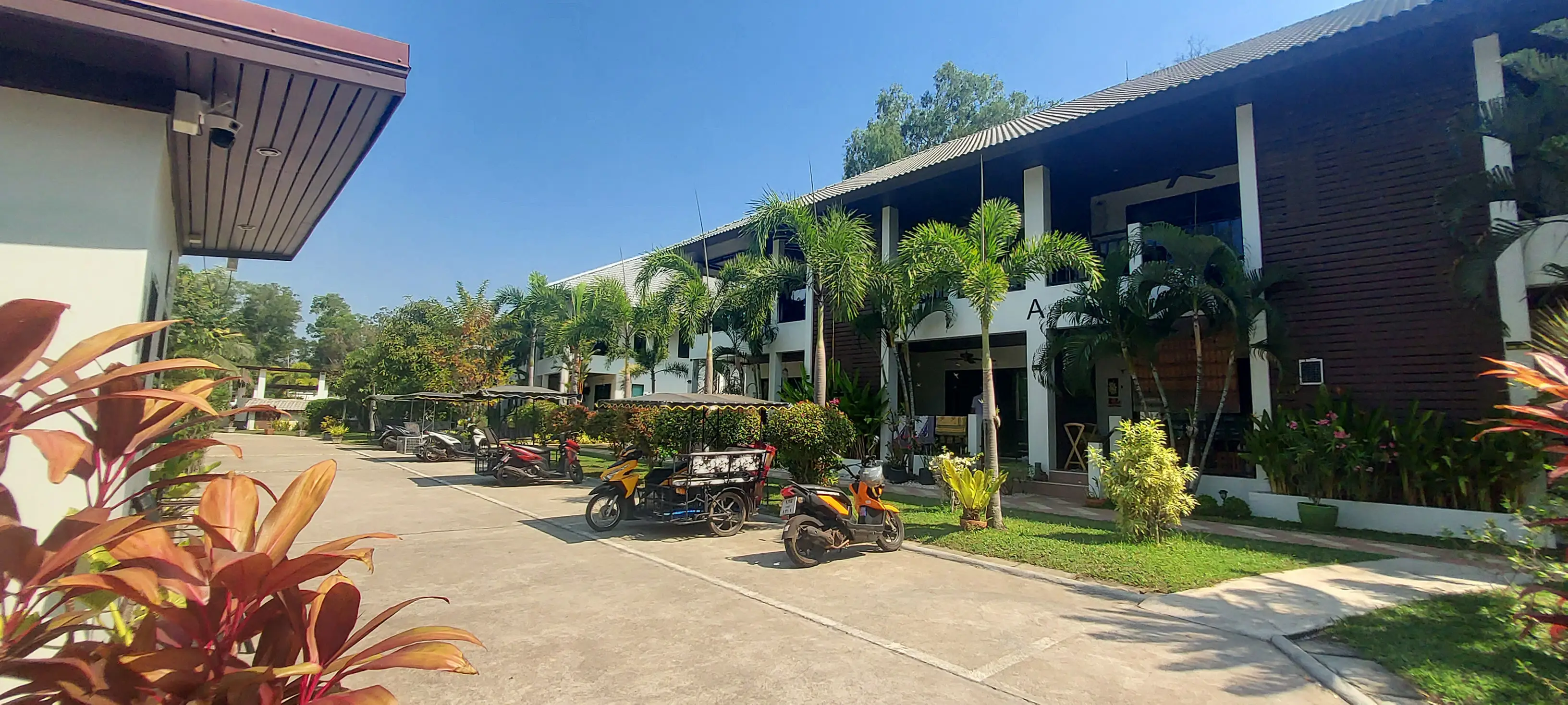 The Palm Leaf residential area is located in the purple village of Phlong Sawai, a few km west of Laem Mae Phim. Nearby is a lovely beach with the restaurant Aquatic.