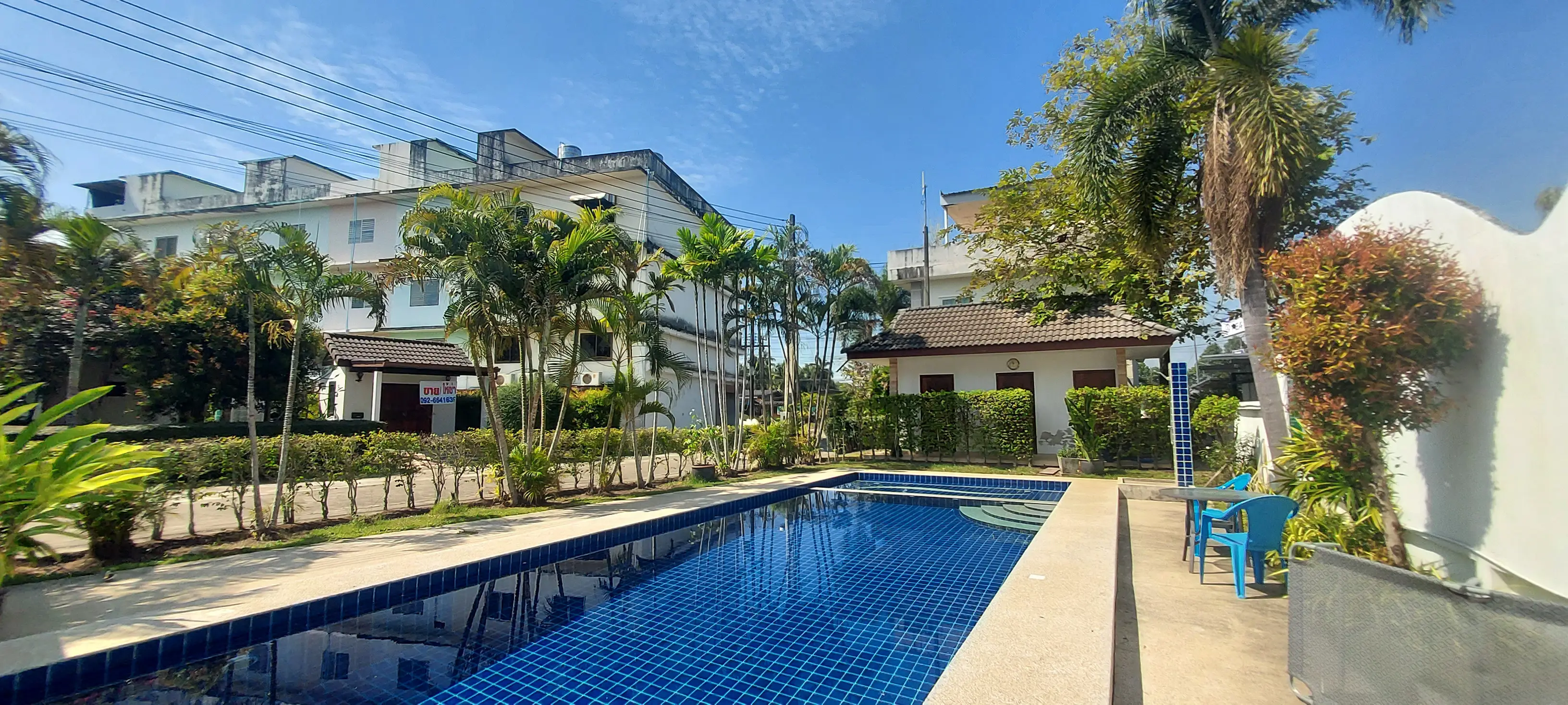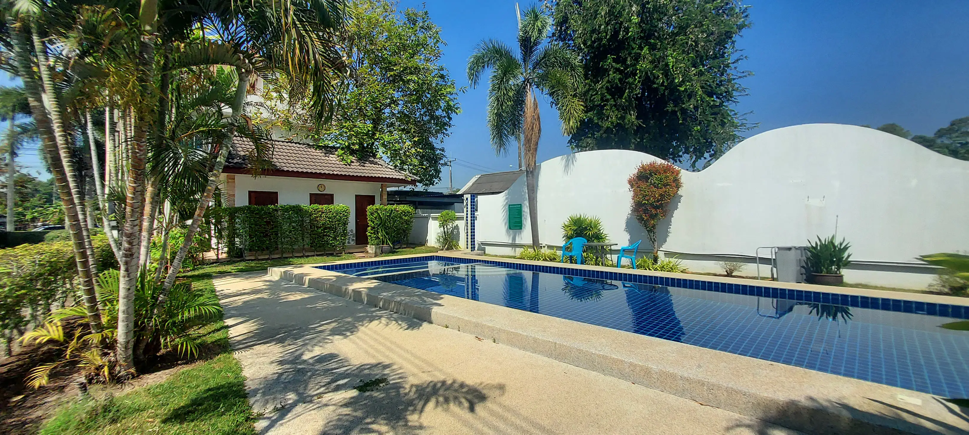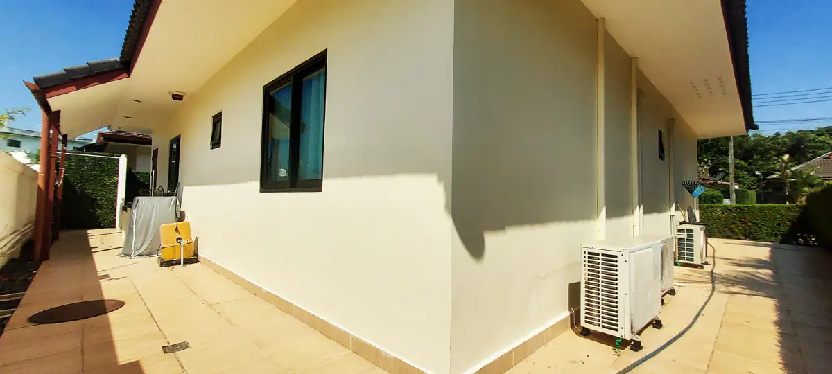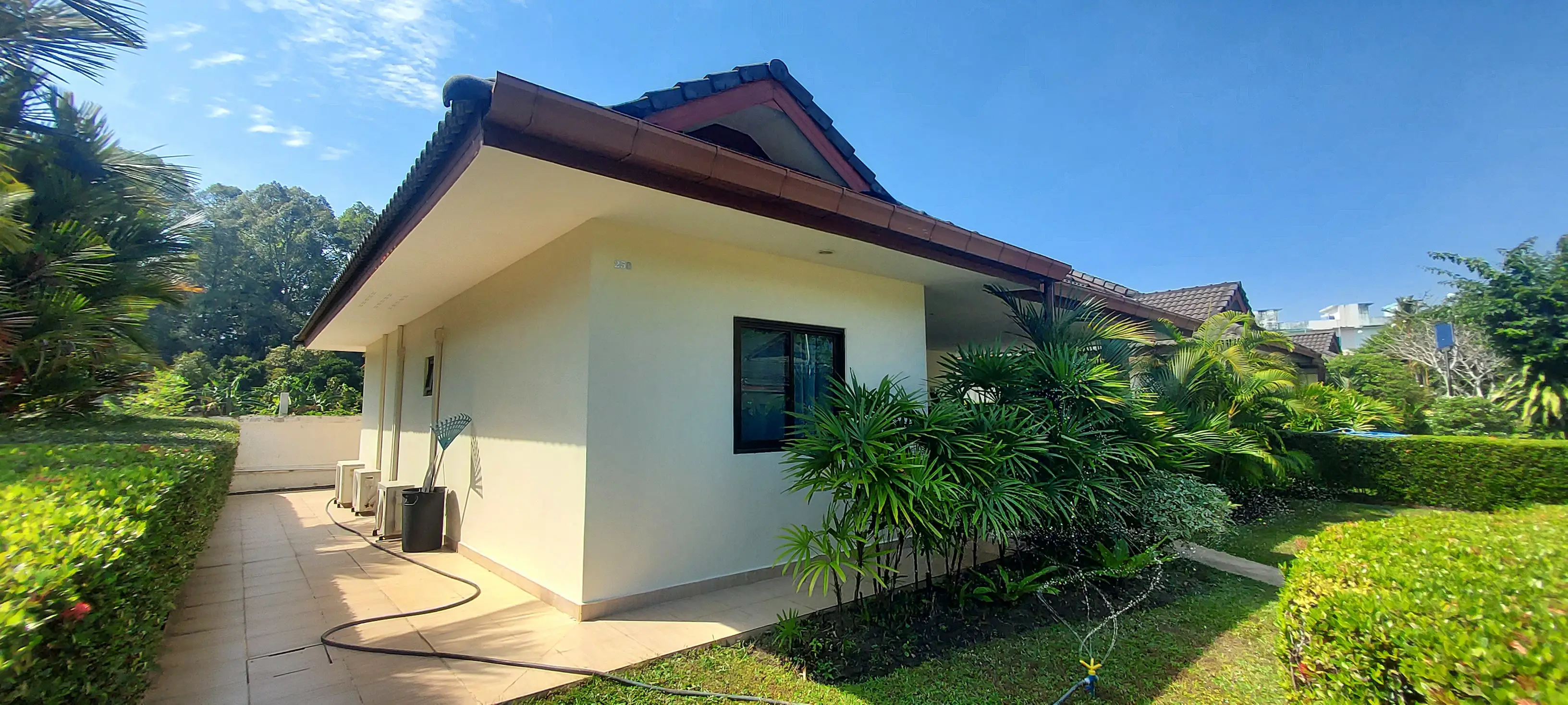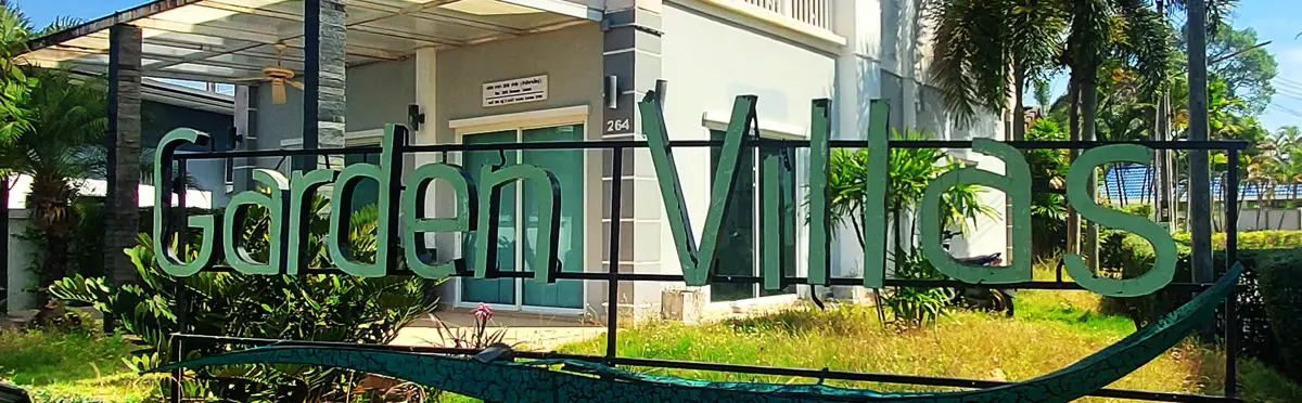 The villa is located in the small residential area of Garden Villas in Mae Phim, Rayong. An area that has 14 villas, an office building and a swimming pool. The area is built around a cul-de-sac with a roundabout.