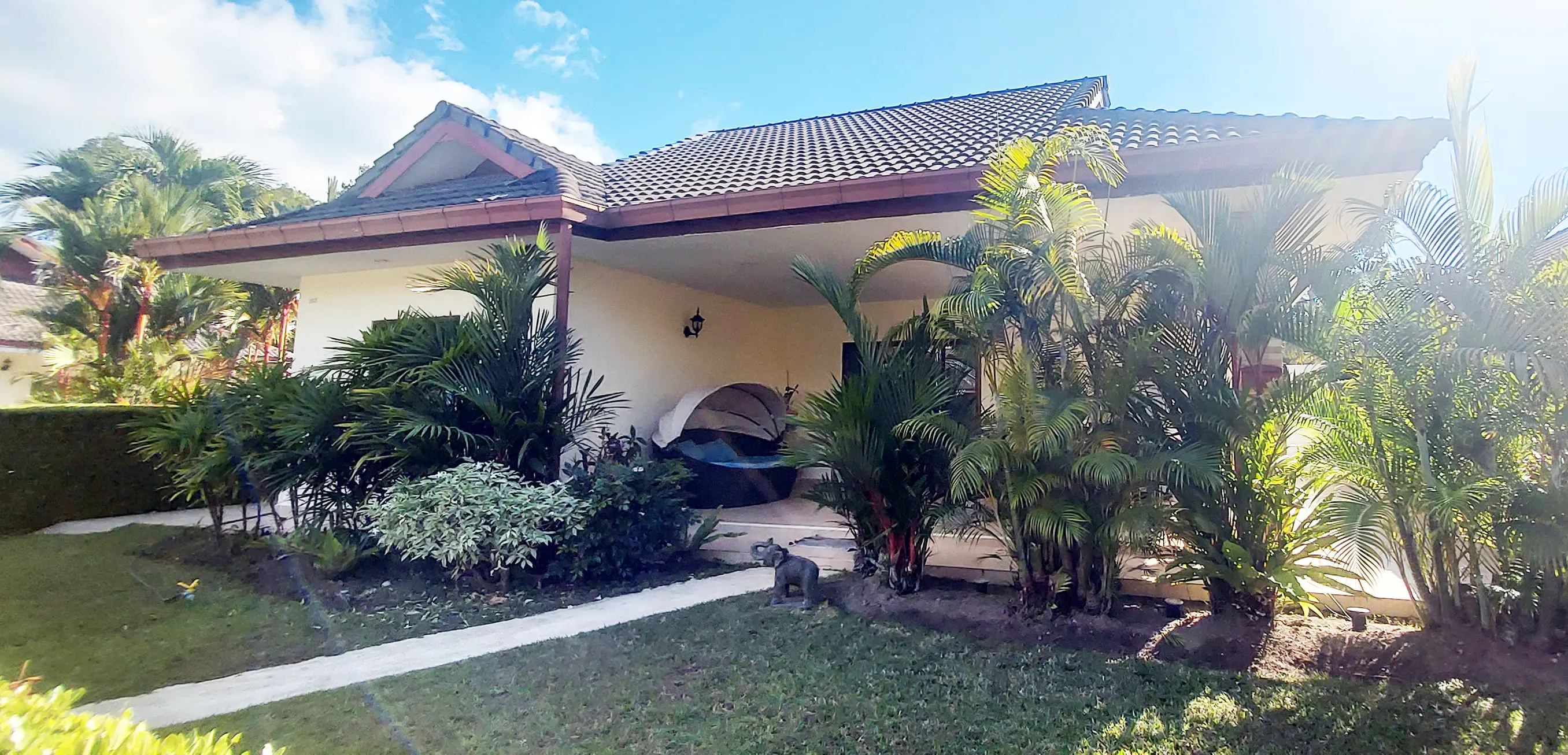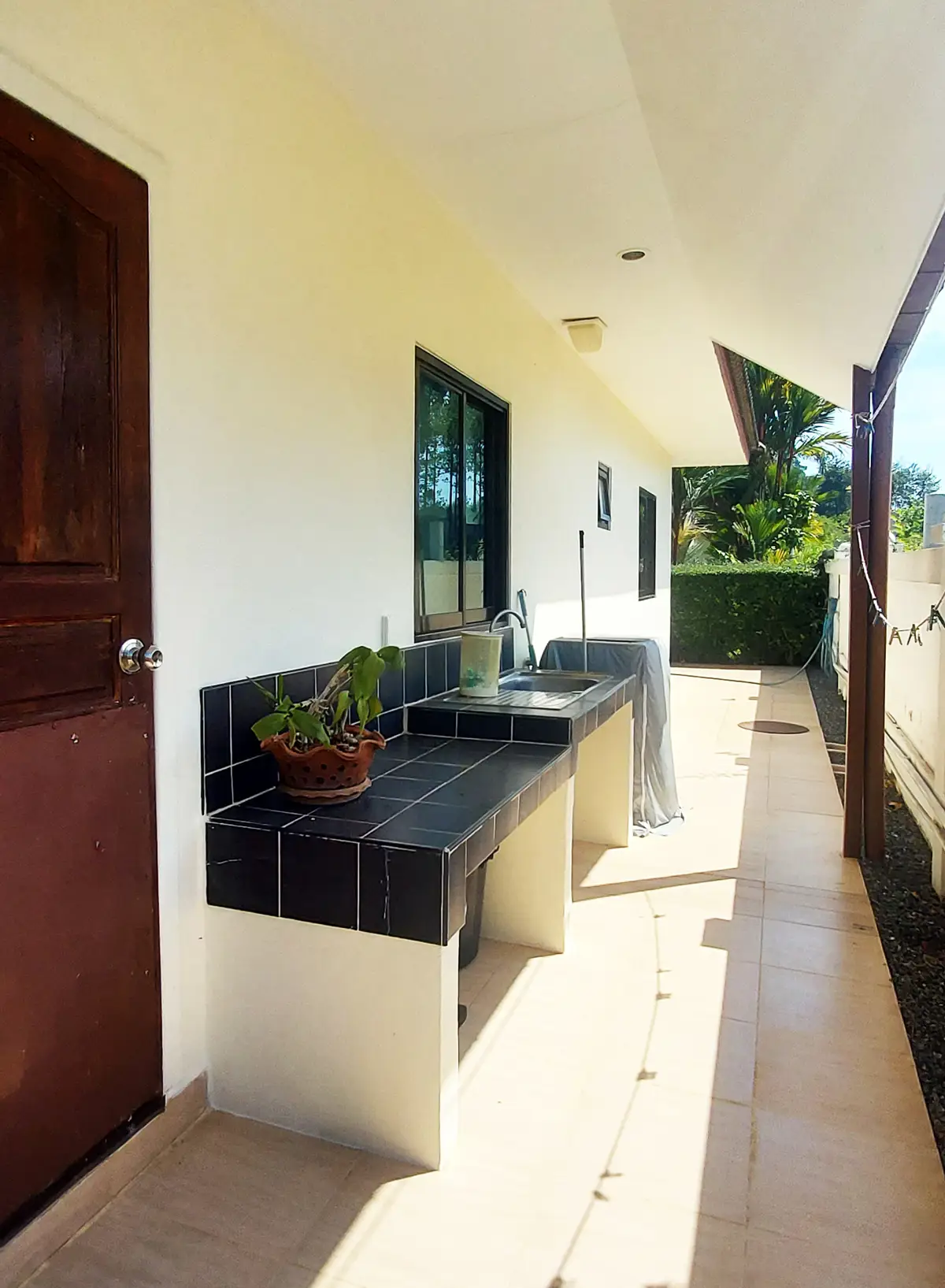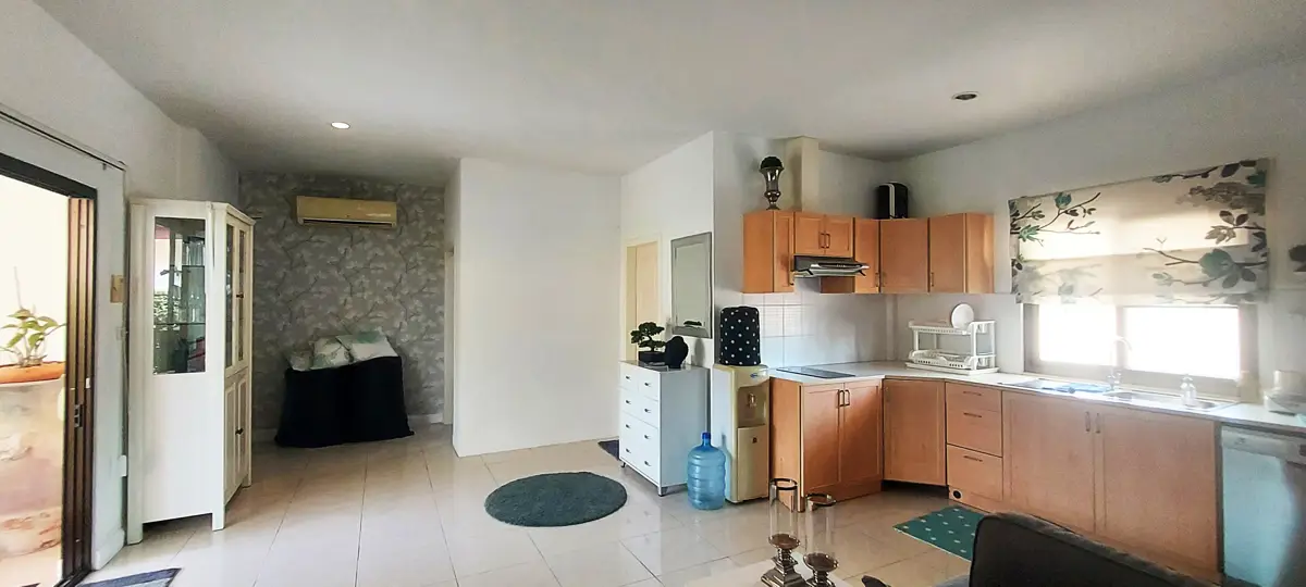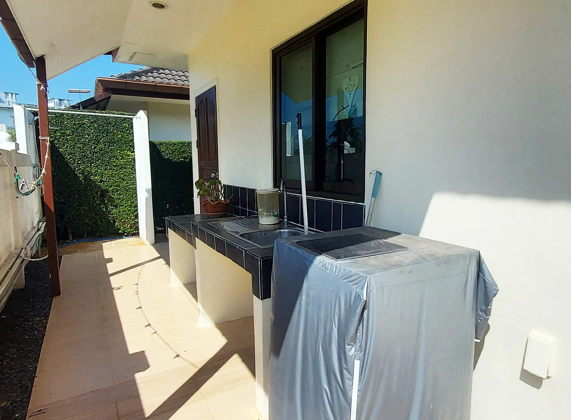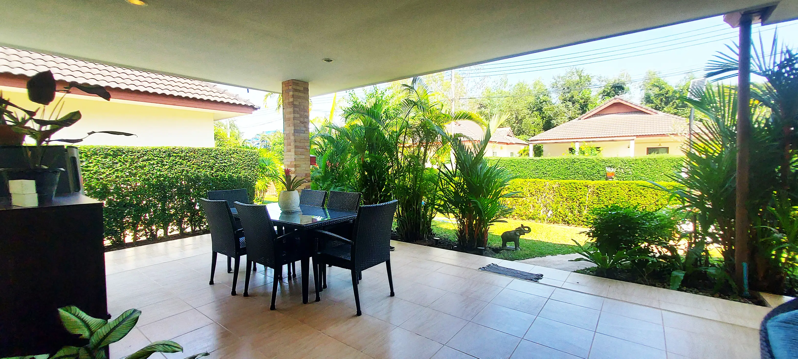 The villa is located in the small residential area of Garden Villas in Mae Phim, Rayong. An area that has 14 villas, an office building and a swimming pool. The area is built around a cul-de-sac with a roundabout.
