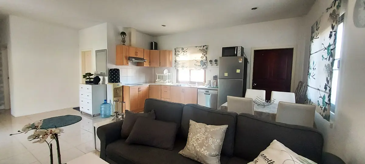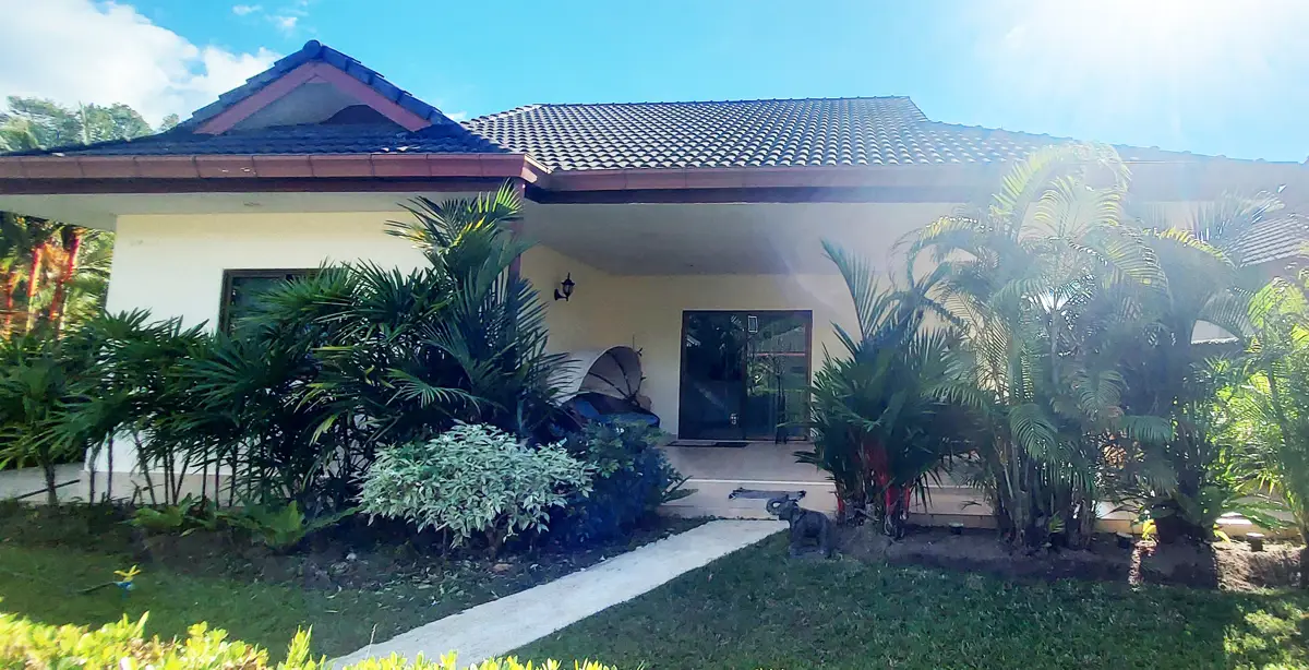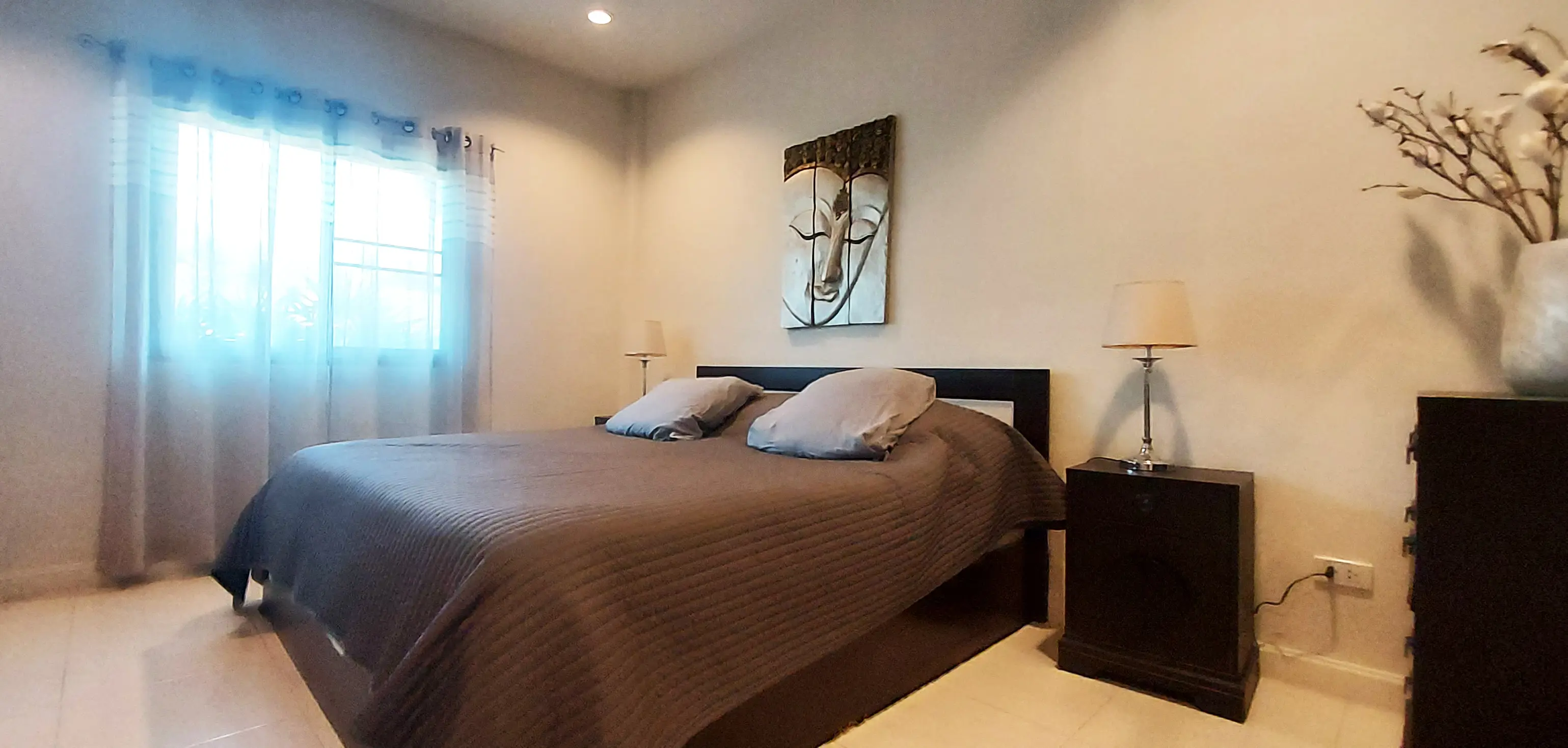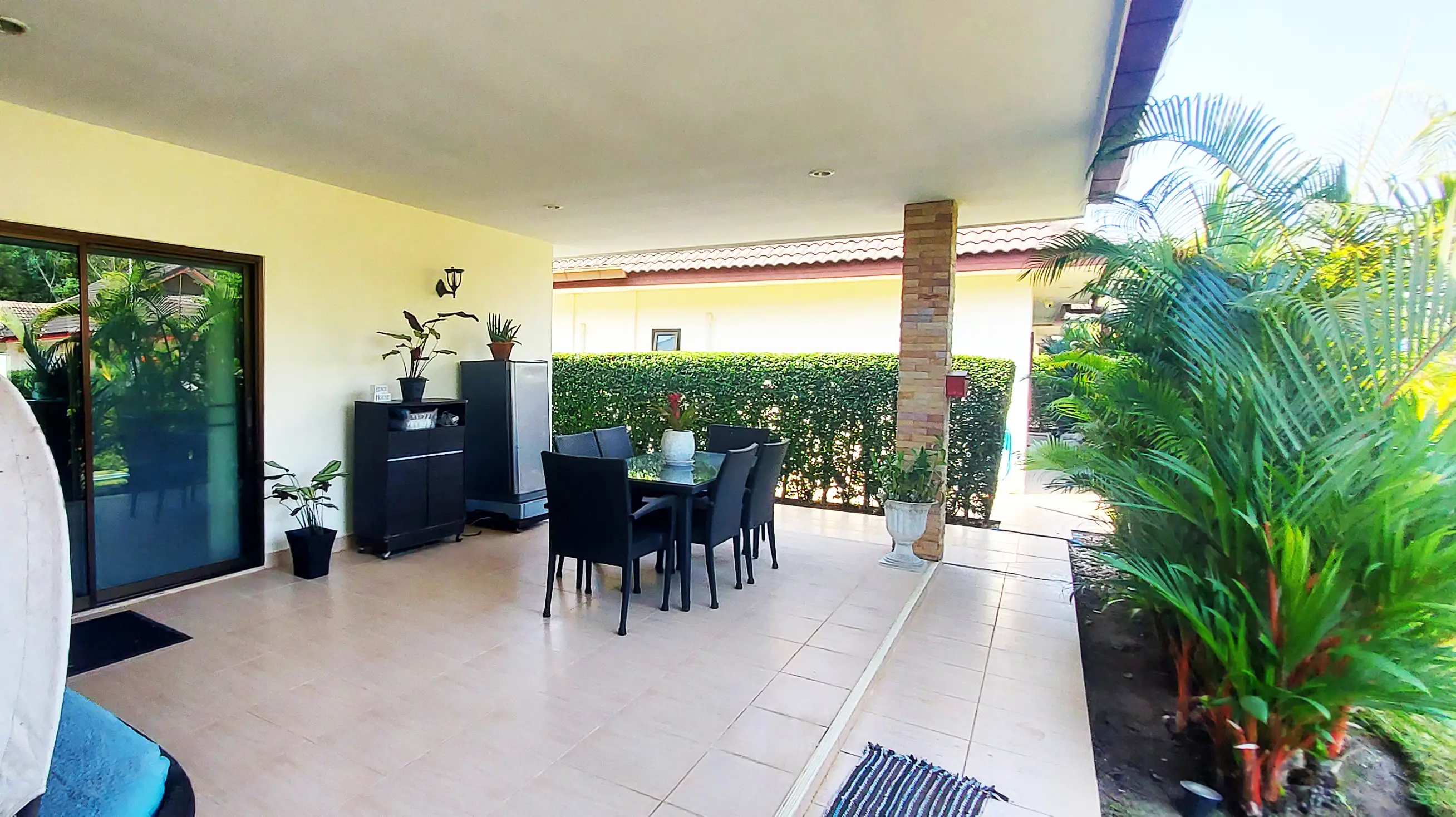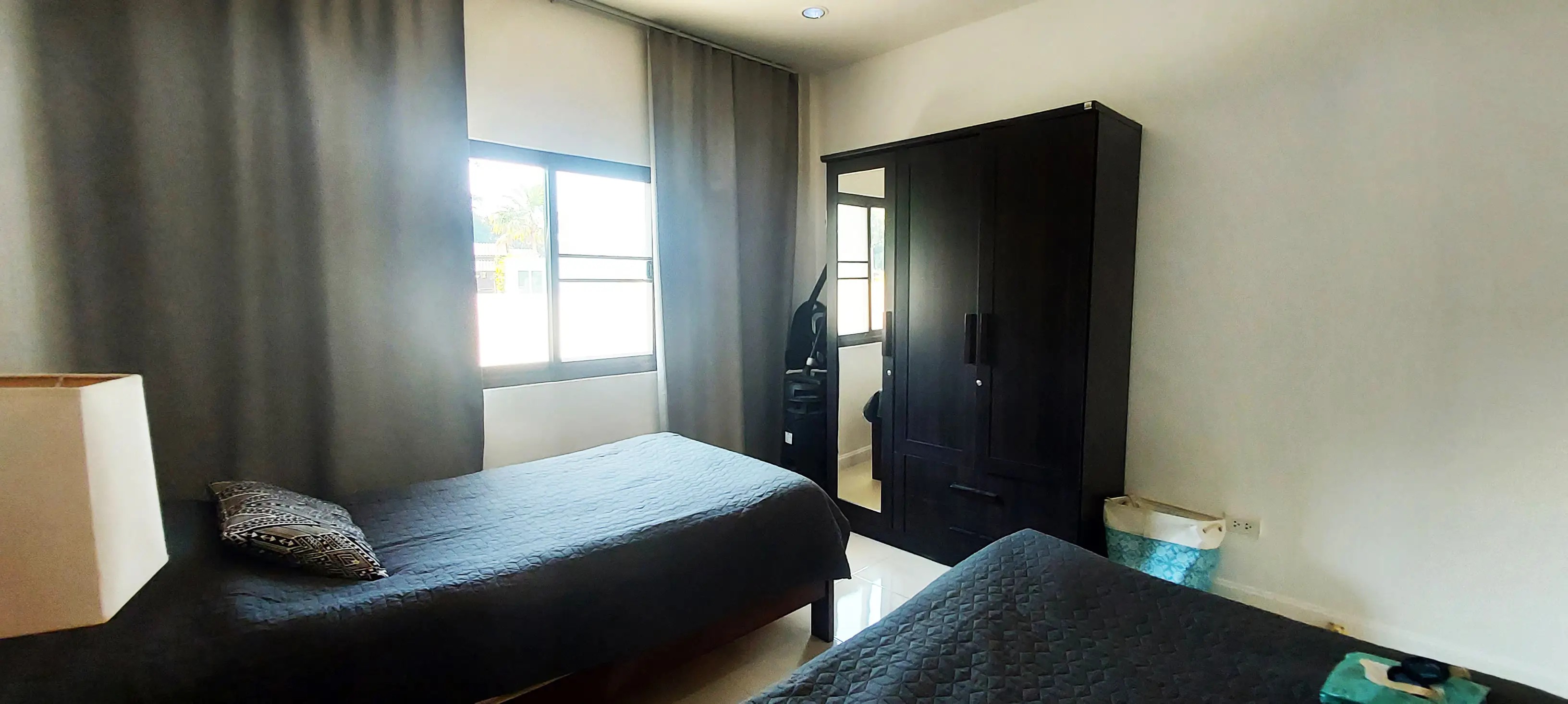 The villa is located in the small residential area of Garden Villas in Mae Phim, Rayong. An area that has 14 villas, an office building and a swimming pool. The area is built around a cul-de-sac with a roundabout.