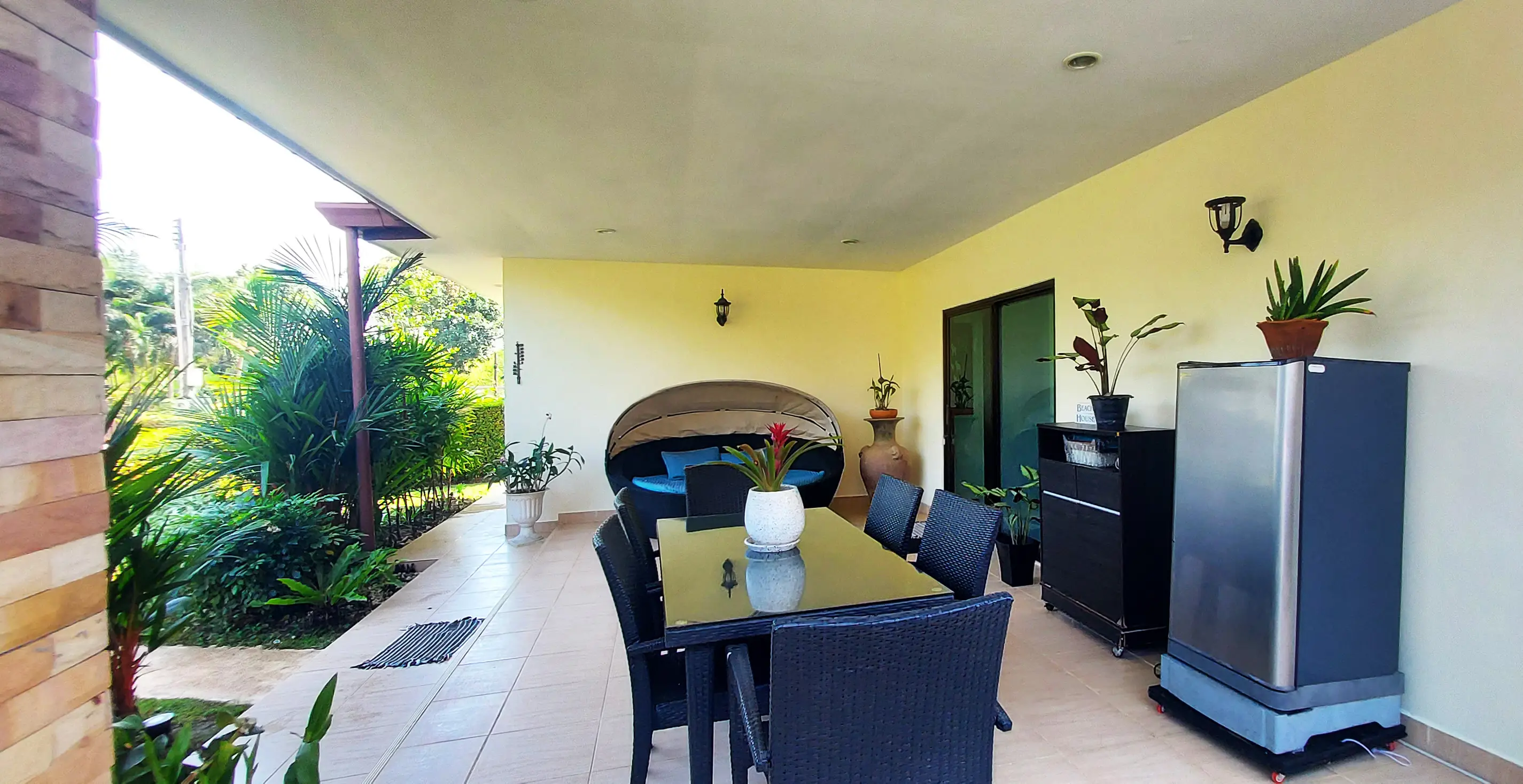 Villa with 2 bedrooms, 2 bathrooms, a large combined kitchen and living room, an outdoor kitchen, and a large covered terrace.